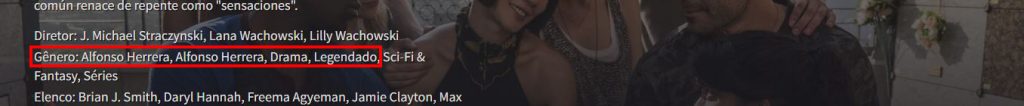 Sempre que um filme, novela ou série filme tiver a opção de assistir legendado ele poderá ser encontrado no menu superior "Legendado" ou ainda irá encontrar a palavra LEGENDADO no gênero do mesmo (como mostra a imagem abaixo):